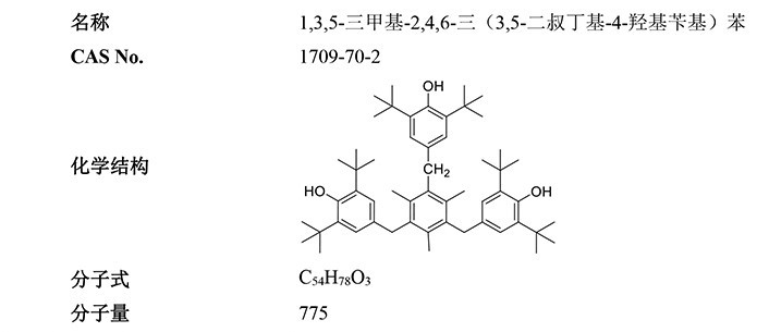 高分子受阻酚类抗氧剂,与材料相容性好,耐水抽提性好。