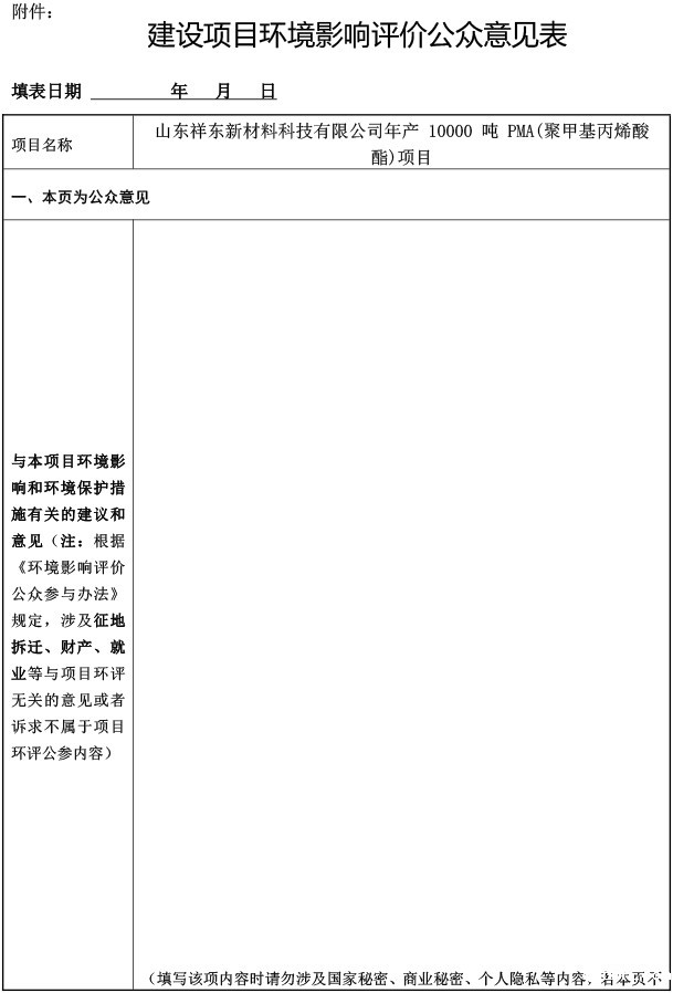 年产10000吨PMA(聚甲基丙烯酸酯)项目环境影响评价